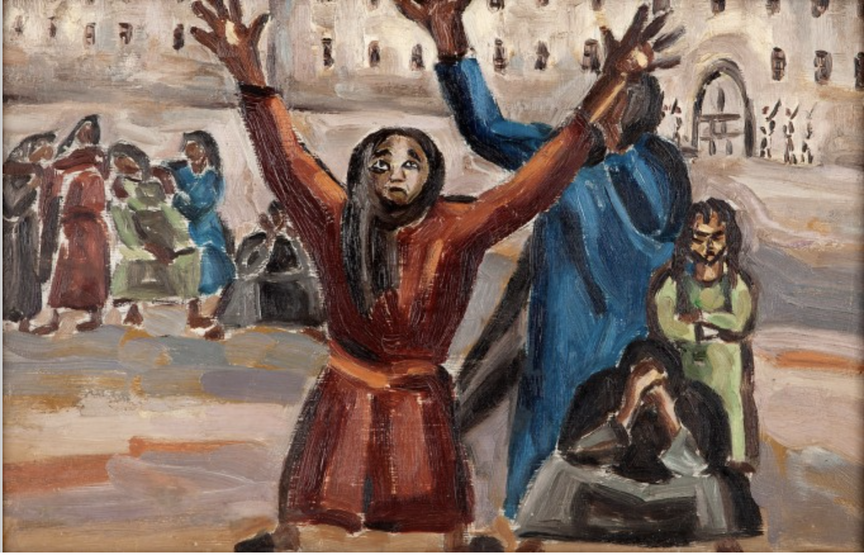 Prisoners by Inji Afflatoun (Oil on Canvas) 1957 from the Barjeel Art Foundation