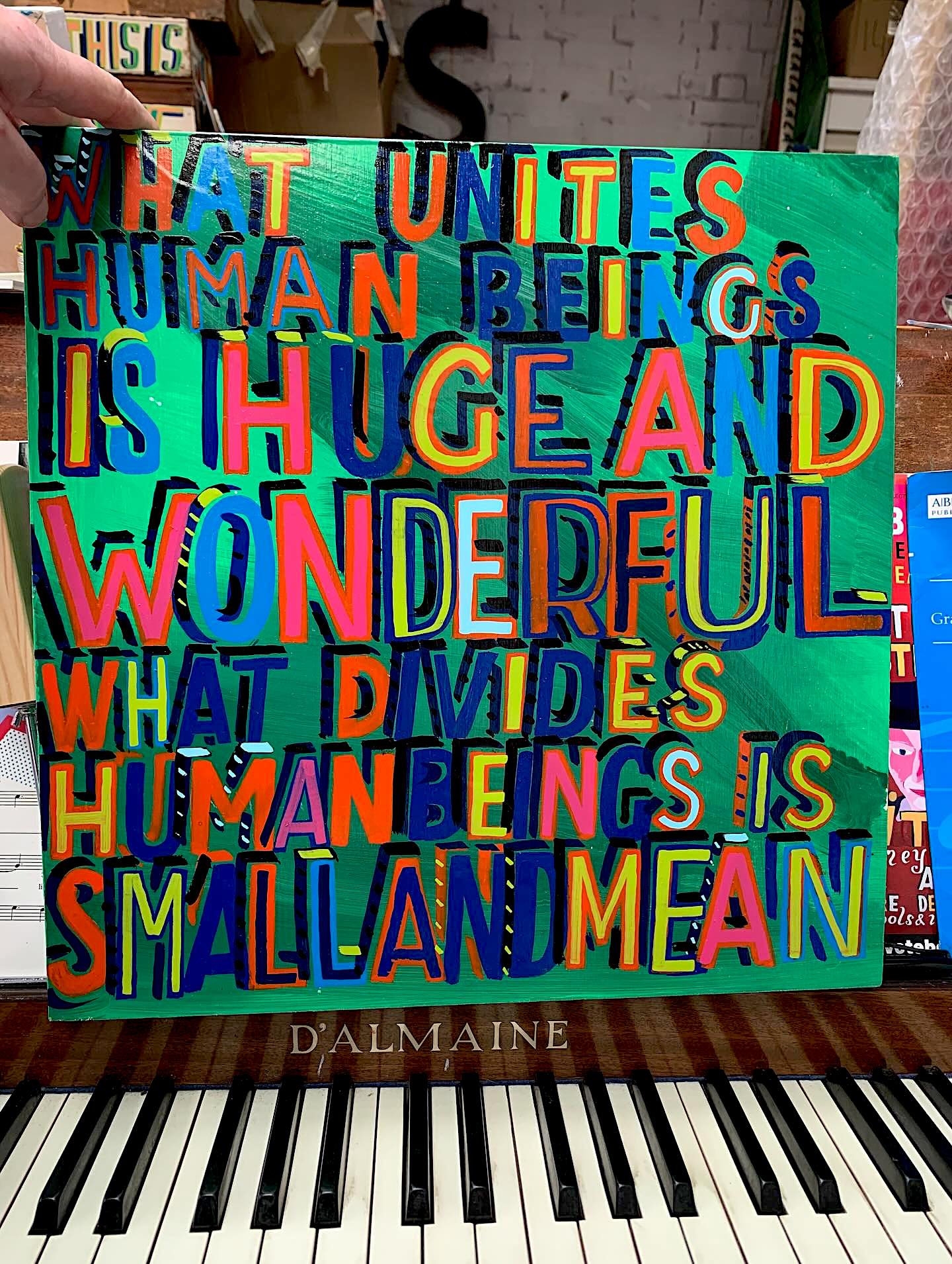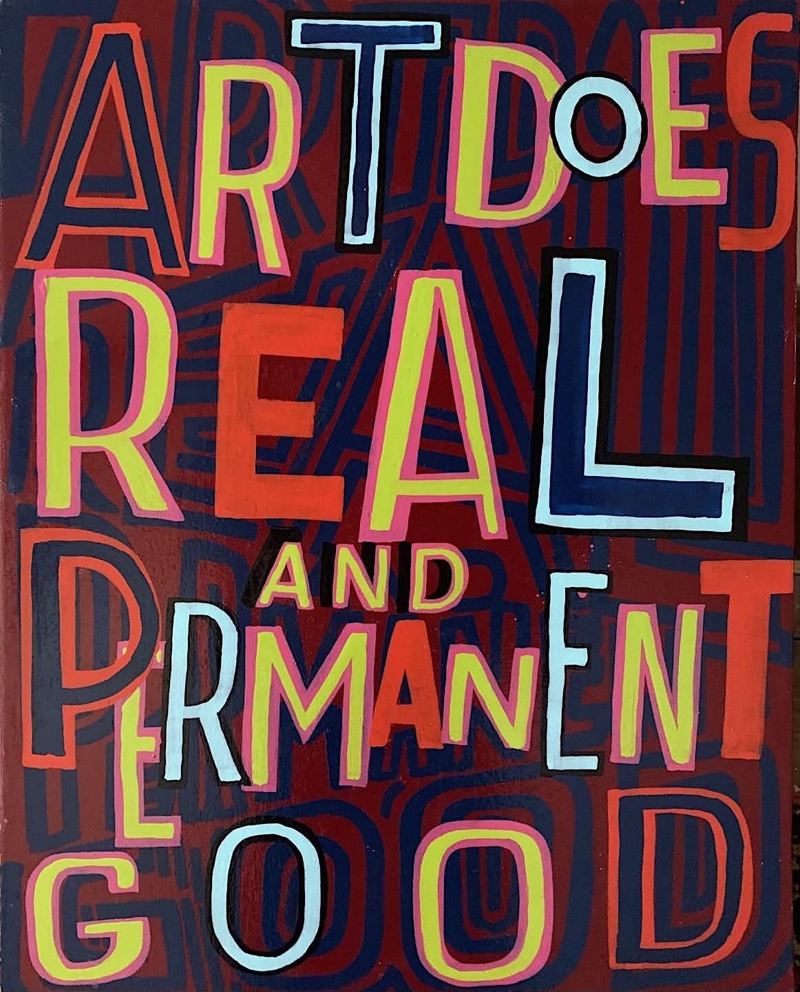 Bob and Roberta Smith is actually one man. He used to collaborate with his sister but she retrained to become a group psychiatric specialist . Bob and Roberta Smith use words painted on canvases and made into signs, written in newspapers and sung in songs to say statements about art and free expression that have influenced generation of teachers and students of arts subjects to embrace the idea that the arts are a human right. Bob and Roberta Smith's painting ‘Make Art Not War’ has become a ubiquitous classic image selling along side Andy Warhol’s Marilyn and Lichtenstien’s ‘Whaam’ in Museum shops. Bob and Roberta’s painting of surgeon David Nott’s interview with BBC journalist Eddie Mair was recently included in the collection of the National Gallery of Wales. Bob and Roberta Smith collaborated in the early 1990's with other artist musicians to create a lively art music scene with his band The Apathy Band. In 2015 Bob and Roberta Smith stood in a general election in the constituency of Michael Gove to directly confront him over his promotion of the Ebacc that has diminished the teaching of art in schools.
